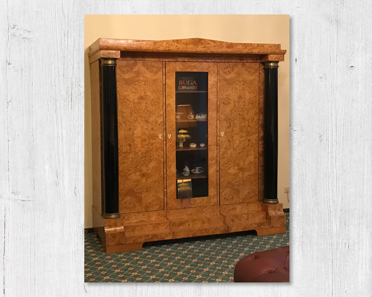 Nr. Bücherschrank Birke furniert, Schellack poliert