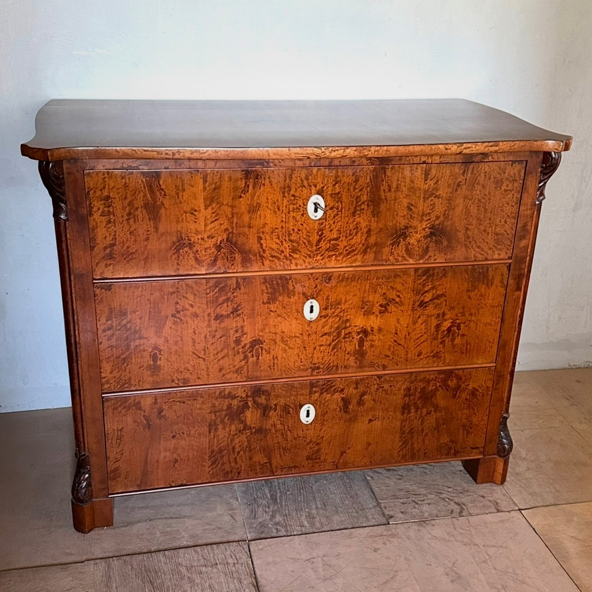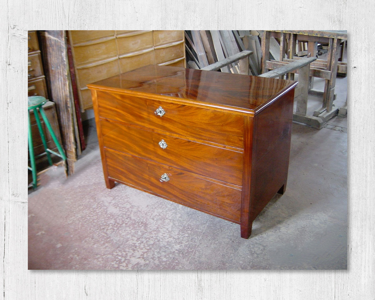 Nr. 2120 Kommode, Mahagoni auf Eiche,Schelllack poliert