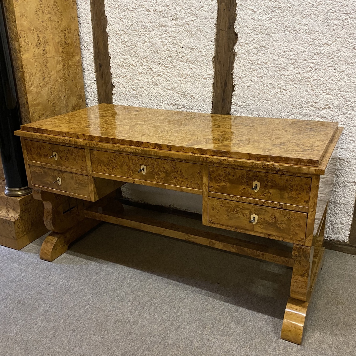 Nr. Schreibtisch Birke furniert, poliert